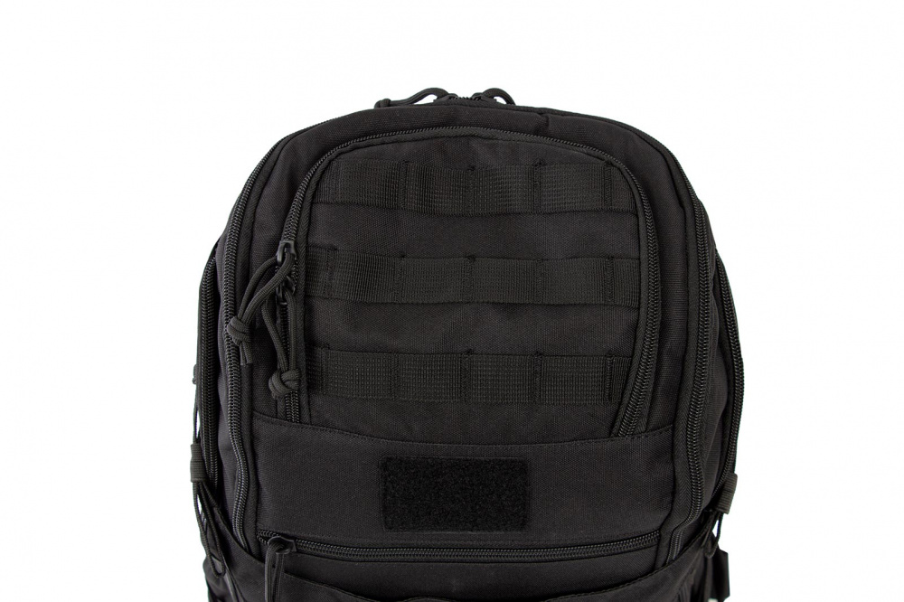 Рюкзак оснащен системой Molle/PALS для крепления подсумков, а также совместим с питьевой системой. Боковые утяжки с фастексами обеспечивают регулировку объема. Рюкзак оснащен эргономичной спинкой с широкими s- образными плечевыми лямками и поясным не съемным ремнем. Имеет основное объемное отделение, открывающееся на 180С, с органайзером на передней стенке.